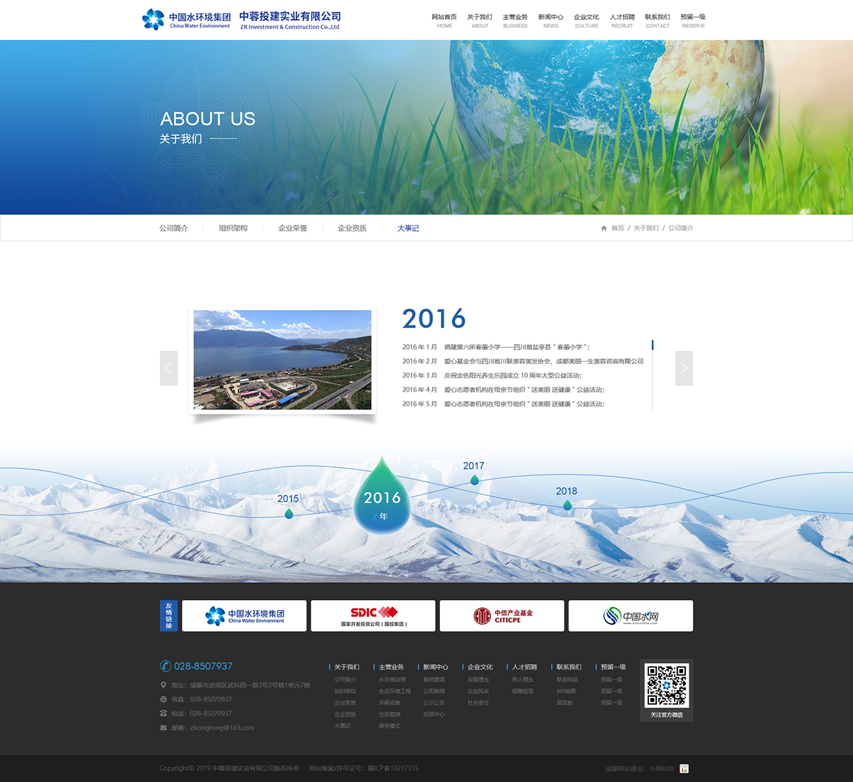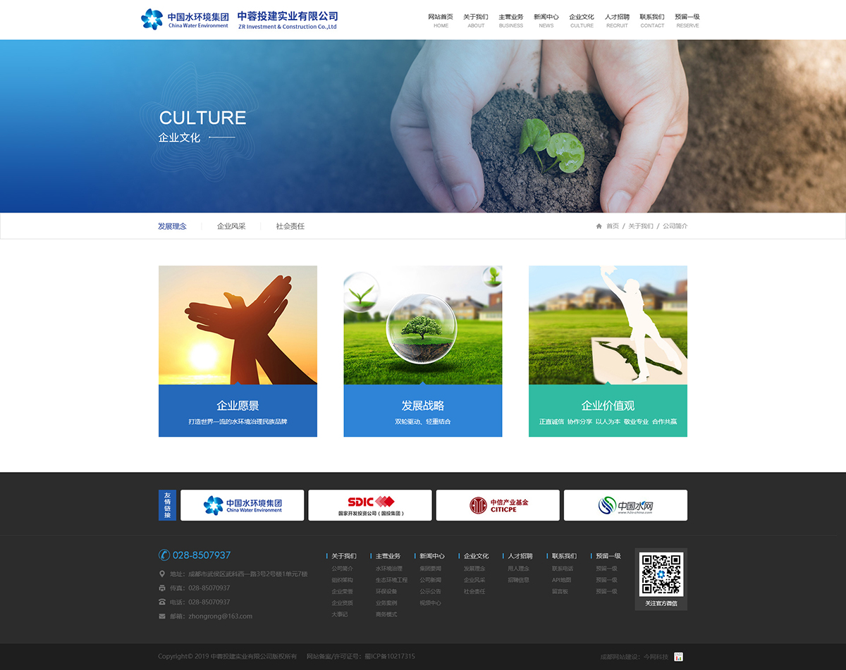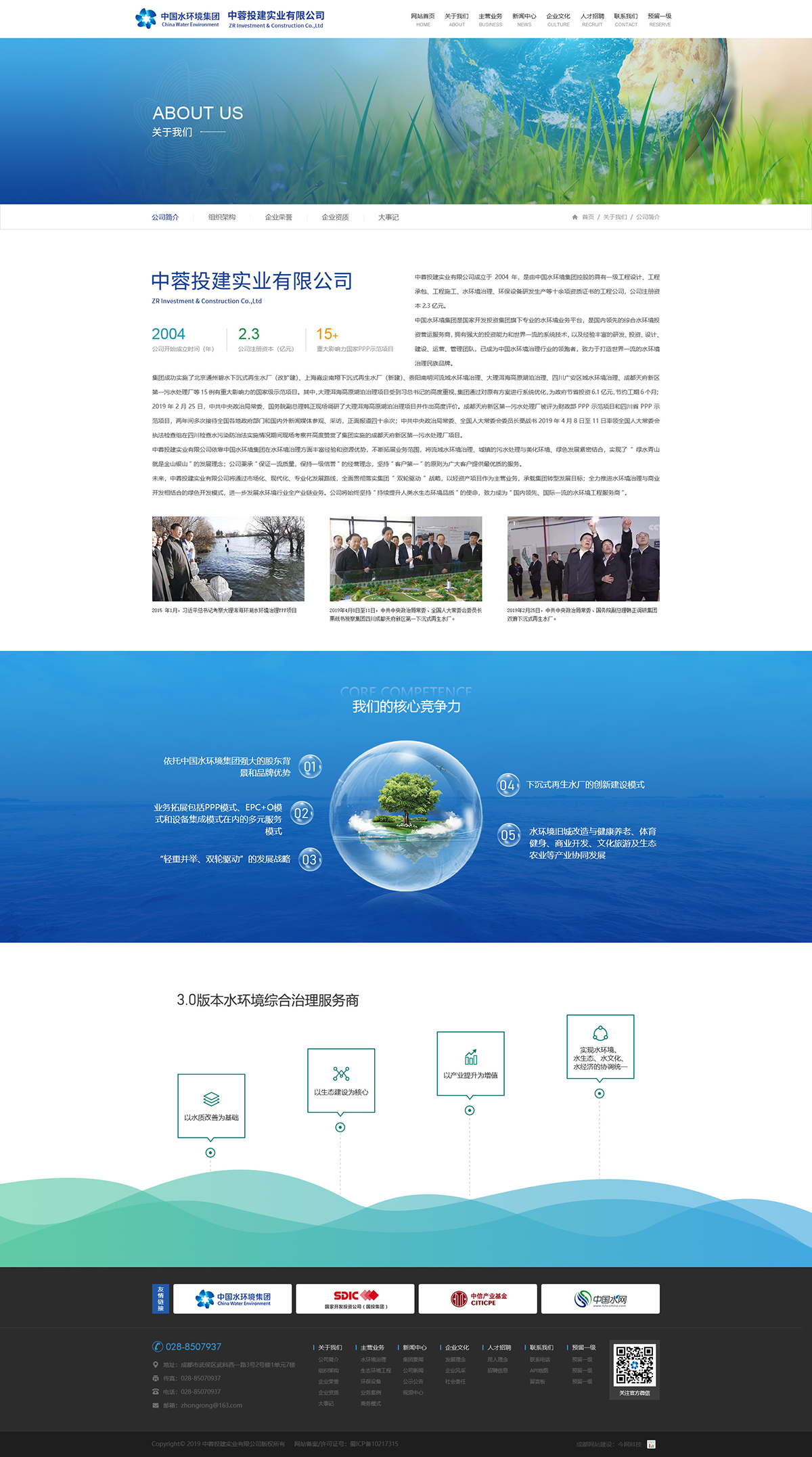 中蓉投建實(shí)業(yè)有限公司成立于2004年,是中國水環(huán)境集團(tuán)的控股子公司。公司具有市政公用工程施工總承包、建筑工程總承包等9個(gè)一級(jí)資質(zhì),涵蓋了水環(huán)境治理工程全領(lǐng)域。中國水環(huán)境集團(tuán)是國家開發(fā)投資集團(tuán)旗下專業(yè)的水環(huán)境業(yè)務(wù)平臺(tái),是國內(nèi)領(lǐng)先的綜合水環(huán)境投資營運(yùn)服務(wù)商,擁有強(qiáng)大的投資能力和世界一流的系統(tǒng)技術(shù),以及經(jīng)驗(yàn)豐富的研發(fā)、投資、設(shè)計(jì)、建設(shè)、運(yùn)營、管理團(tuán)隊(duì),已成為中國水環(huán)境治理行業(yè)的領(lǐng)跑者,致力于打造世界一流的水環(huán)境治理民族品牌。