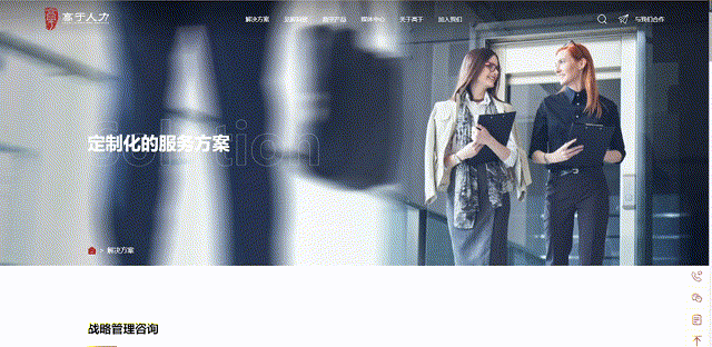 “解決方案”分為“戰略管理咨詢、組織變革咨詢、人力資源管理、人力資源數字化”采用“圖片卡”和“圖文合擺”形式圖文并茂地宣介公司核心業務群組,讓“禮”盡在掌握!