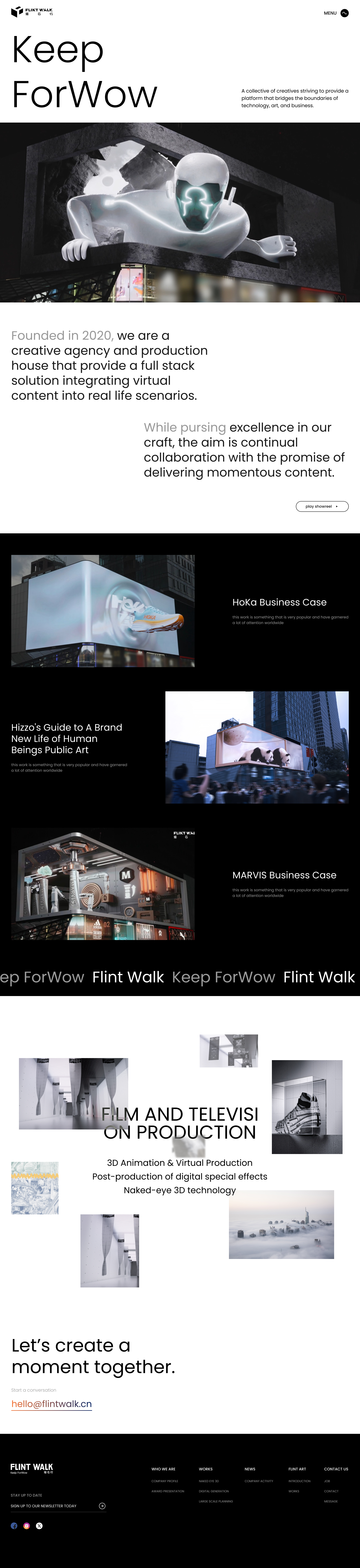 全球裸眼3D巨物化及真人實拍開創者、全球裸眼3D屏幕交互開創者中國首個院線定制裸眼3D映前短片、成都太古里地標媒體獨家內容運營。全球裸眼3D巨物化及真人實拍開創者、全球裸眼3D屏幕交互開創者中國首個院線定制裸眼3D映前短片、成都太古里地標媒體獨家內容運營。