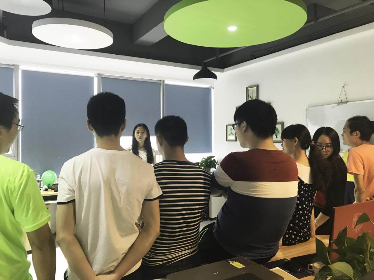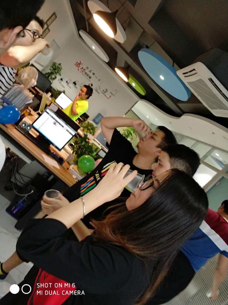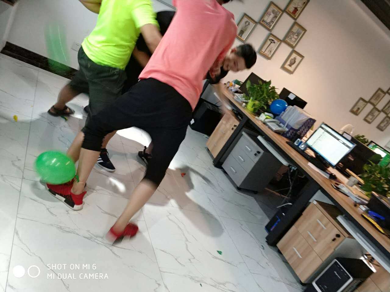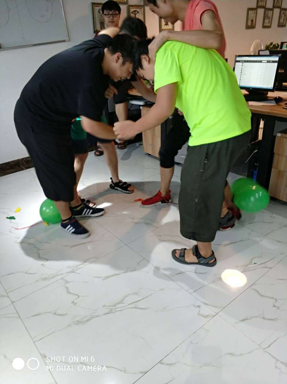 時間過得相當(dāng)?shù)目欤唤?jīng)意就來到了最后一個環(huán)節(jié),踩氣球。兩隊每兩個成員綁上氣球,相互對抗,踩爆他的球~~~噢!!!小編似乎看到了一場血雨腥風(fēng)。