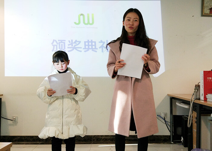 此次年會節(jié)目精彩紛呈、讓人目不暇接。中間還穿插了抽獎環(huán)節(jié),隨著三等獎、二等獎、一等獎、特等獎的抽取,不斷掀起年會的高潮。年會不僅給大家?guī)砹藲g聲笑語,同時也讓同事之間彼此的心更加貼近。公司領(lǐng)導(dǎo)與員工親切互動、激動人心的抽獎活動,讓歌聲、掌聲、歡呼聲一直在會場上蕩漾。整場年會高潮迭起,呈現(xiàn)出今網(wǎng)科技這個大家庭的歡樂和諧。
