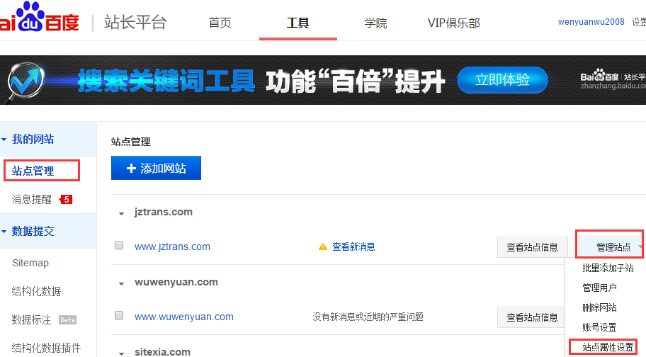 同時,還可以自己主動給百度提交縮略圖,也就是利用百度站長平臺http://zhanzhang.baidu.com/,站點管理中可以設置某站點屬性,可以自己添加logo,待百度審核通過后該logo圖片就能顯示在搜索結果中,如下圖: